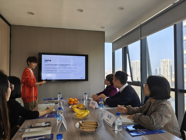 走访过程中,大区业务总监聂星烁介绍了公司发展情况、业务运营情况,表达了对于人才需求的愿望以及进一步与公司深化合作的校企共建实训计划的意愿。孙小军副经理表示,公司专业建设和课程建设基础扎实,人才培养成效显著,欢迎克拉思璞来公司拔擢人才。杨春燕副经理谈到,公司业务具有十分广阔的空间,可以给予毕业生更好的职业发展路径与想象空间,对拓宽毕业拓展就业渠道意义重大。全英的办公环境,更有利于员工进一步强化口语专业技能,为员工在语言赛道的职业发展助力。朱莉副书记期待校企共建实训计划的推进和落地,能有效助力毕业生精准对接就业市场,开拓毕业生就业渠道,提升毕业生就业质量。