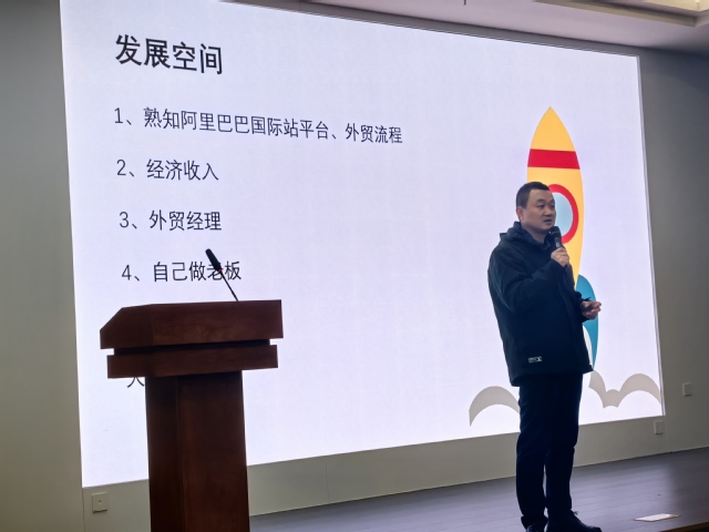此次动员会,公司特别邀请到跨境电商领域的人力资源专家,杭州外贸跨境综试区人力资源的刘涛老师。刘老师为同学们详细介绍了杭州地区跨境电商行业的发展现状以及前景,以及杭州各区县的招才引智政策,鼓励同学们前往杭州地区就业创业。会上,刘老师对于外贸行业人才画像做出了详细的阐述,让同学们对于外贸相关岗位职责以及岗位要求有个更加直观的了解。
