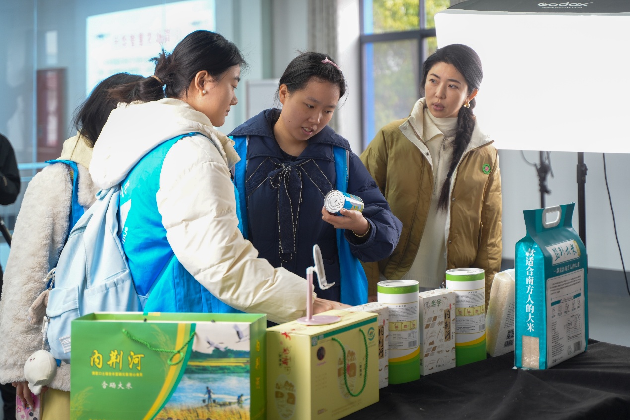 在工作人员的引导下,队员们参观了“内荆河”大米文化展厅。从品种选育、生态种植到加工包装,展厅通过图文展板、实物陈列和数字化影像,生动呈现了“内荆河”大米从田间到餐桌的全产业链条。工作人员介绍,所有产品的生产均以“绿色种植”为理念,依托内荆河优质水源和富硒土壤,结合有机肥替代、无人机植保等技术,确保大米的品质与安全。团队成员们纷纷感叹,一粒米背后竟有如此多的科技细节,现代农业早已不是“面朝黄土”的传统模样,同时也进一步认识到品牌塑造和文化赋能在现代农业产品推广中的重要意义。