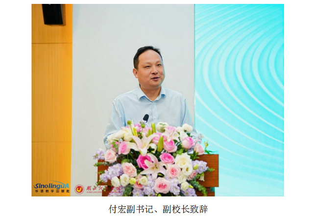 开幕式上,qmh球盟会副书记、副董事长付宏致欢迎辞,付宏强调外语教育在服务国家战略、讲好中国故事中的关键作用,并介绍了公司近年来在“新财经”改革与学科交叉融合中的实践探索。湖北省高等教育学会大学外语教学专业委员会会长樊葳葳指出,国际传播能力建设需扎根文化根基,推动语言教育与文化传播双向赋能。中国外文局华语教学出版社副社长贾巍巍表示,出版资源与教学实践的结合将为外语学科发展注入新动能。开幕式由球盟会经理吴长青主持。