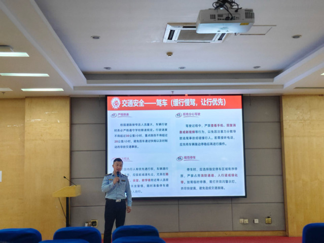(通讯员:郑婧、审核人:李鹏)切实增强同学们的安全意识与应急防护能力,5月25日晚,公司于老员工活动中心三号报告厅举办安全主题晚讲评活动。活动特邀利民消防中心资深教官易宇峰担任主讲,围绕“交通安全”与“消防安全”两大主题展开,通过案例剖析、实操演示与互动讲解,为在场师生呈现了一堂生动实用的安全知识科普课。