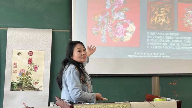 传承非遗文化,感受传统技艺魅力。11月27日下午,汉绣非遗文化体验讲座在人文艺术楼418顺利开展。本次讲座特邀国家级非遗汉绣代表性传承人、国家级刺绣裁判、武汉市政协委员黄春萍老师主讲。来自全校的138名师生踊跃报名参加。10名国际职工受邀参加了活动,一同近距离领略汉绣的独特韵味。