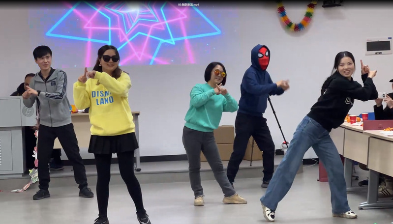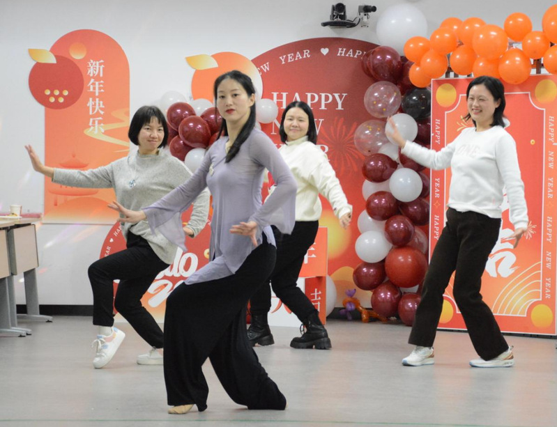 王瑞辑,周瑾平,程曼莉,郑昭梅四位老师的集体舞《Last Christmas》红红火火辞旧迎新;胡颖和石瑛老师的合唱《Baby, It’s Cold Outside》委婉动人;球盟会全体男老师的集体舞《桃花运》再次引爆全场,大家尽情欢笑,欢乐无比。大家用自己的方式表达着对元旦佳节的喜悦之情。